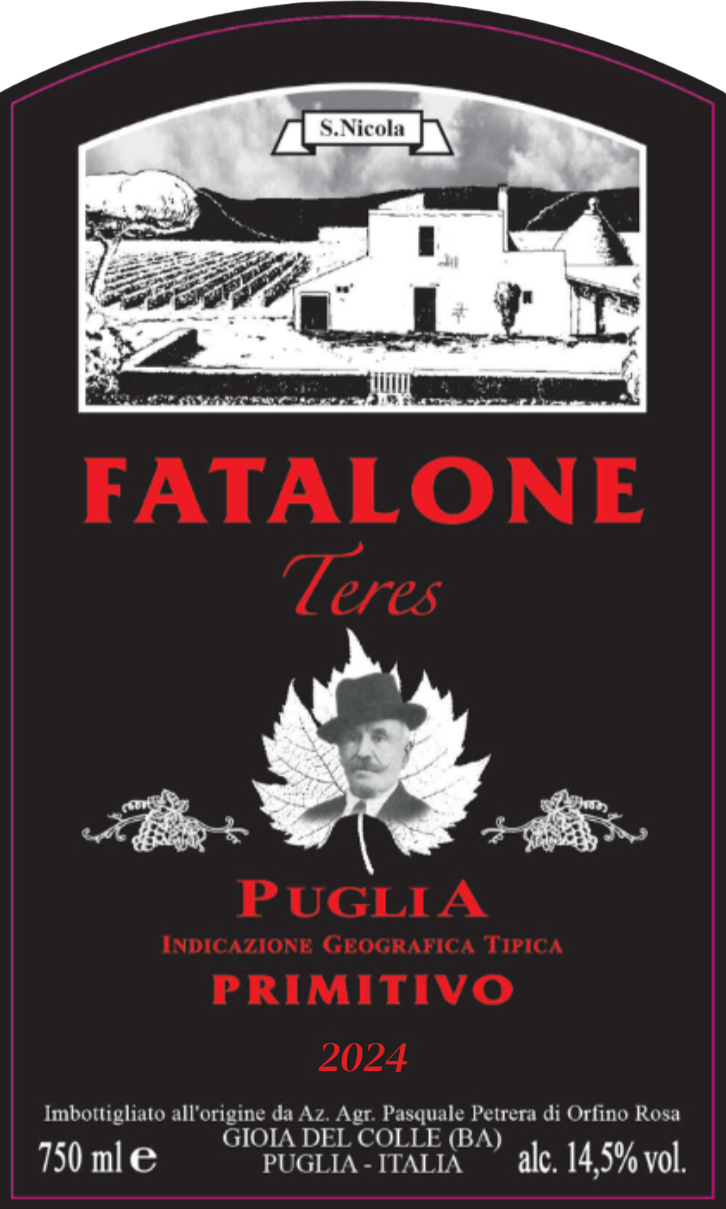 Azienda Agricola Petrera Pasquale (Fatalone) has been making wine in the Gioia del Colle region since the late 1800’s. Like many producers in the area, bottling wine came late; most wines were sold in sfuzo, where locals would bring jugs and fill up from the tank. It was only in 1987 that the first bottles of ‘Fatalone’ were produced. A winery with intense dedication to the earth, their certified organic farming practices prove to make exceptional Primitivo Gioia del Colle in three different styles, and one bianco made from the local Greco. Their belief in organic principles and renewables extends to the winery where only solar power is used to power the entire production. Fatalone is a zero emission winery. Stainless steel is used for primary fermentation in all of the wines, and when oak is used, it is always large, old Slavonian oak. Sulphur is not used during vinification, and only a minimum but stabilizing amount is used at bottling, leading to a remarkably purity of fruit.